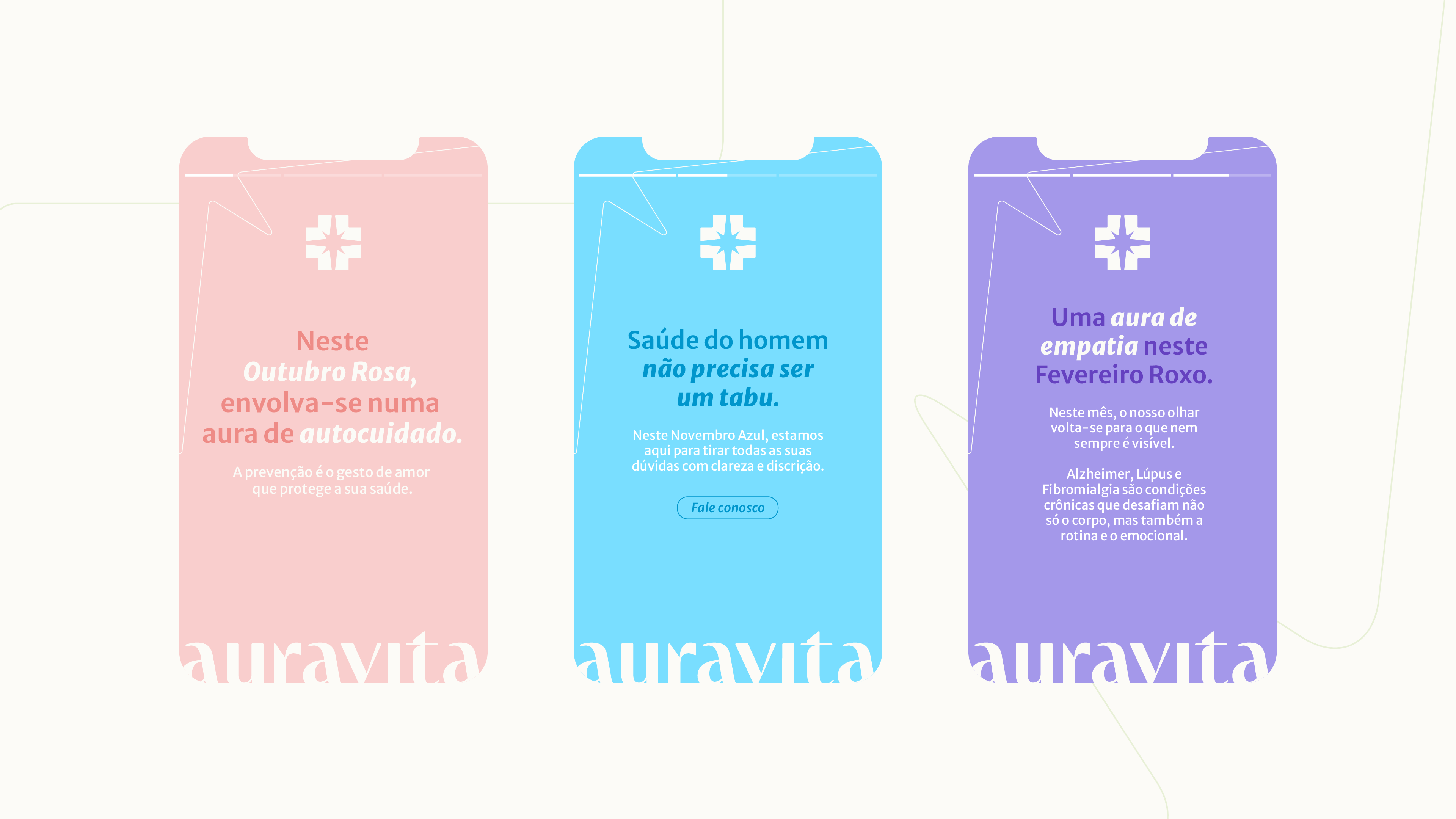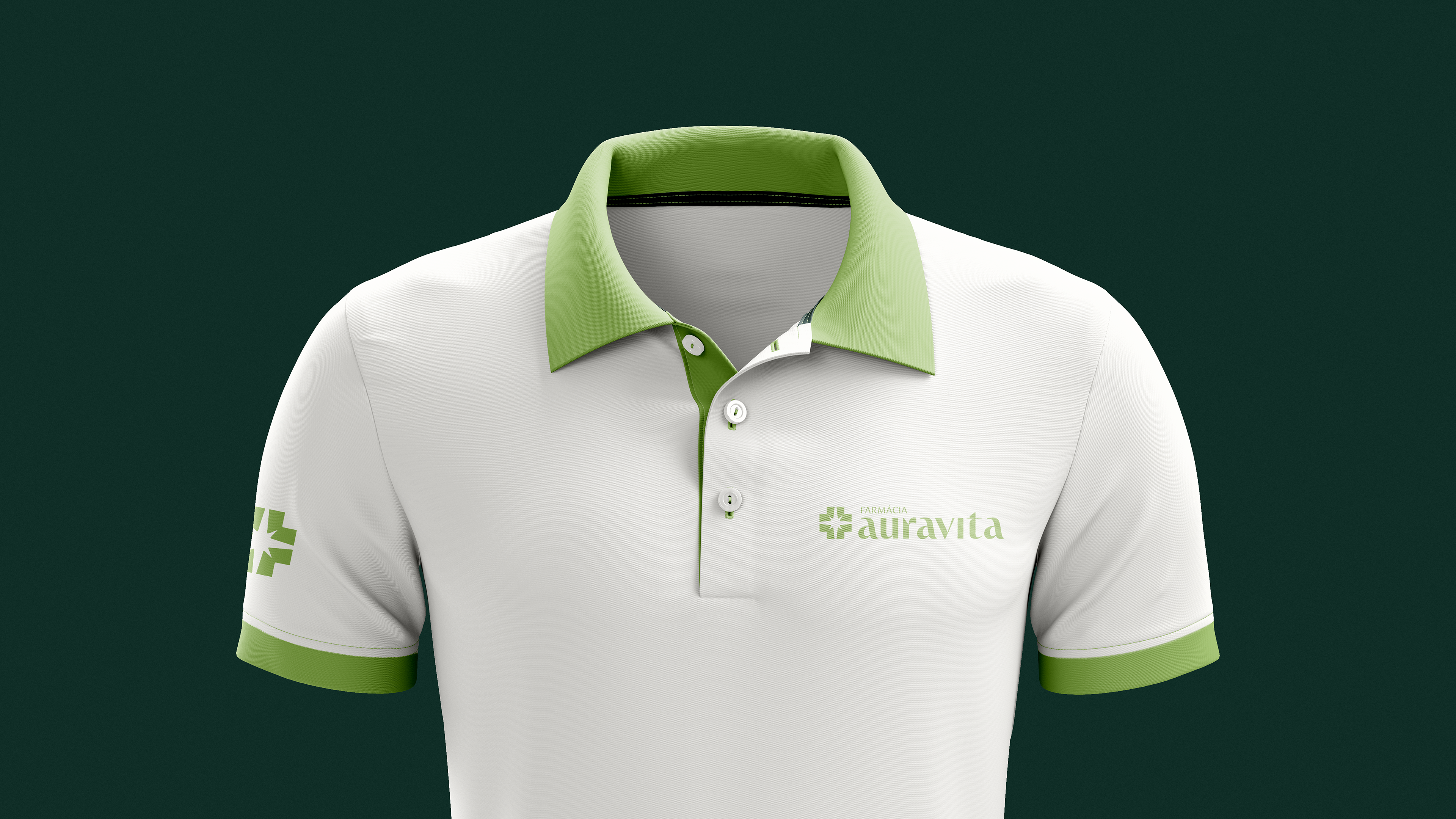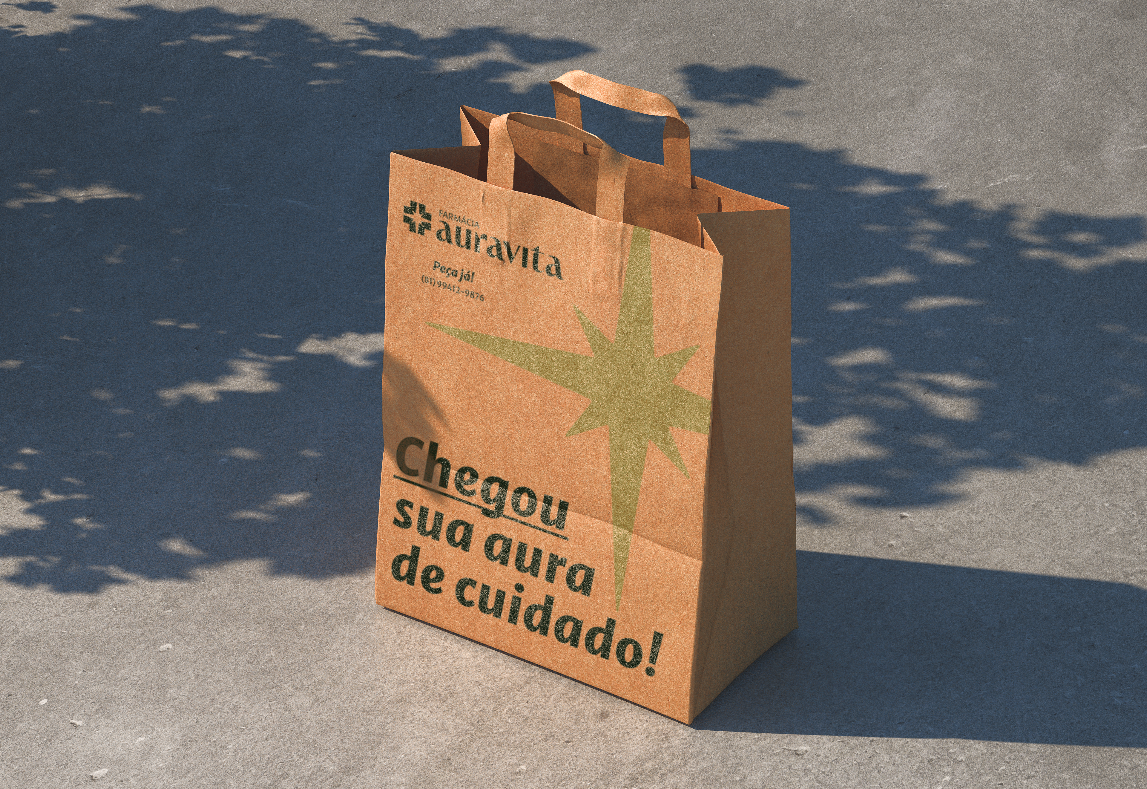 Essa estratégia fundamenta o naming Auravita: uma solução que equilibra a atmosfera de bem-estar (Aura) ao compromisso com a saúde (Vita), superando a complexidade de registro na Classe 35 do INPI. O sistema visual rompe com o padrão popular ao adotar o Verde Aura, evocando serenidade e sofisticação. O logotipo funde a cruz farmacêutica a uma estrela de oito pontas, simbolizando o acompanhamento ativo e a localização geográfica da marca (encontro central de ruas). Complementado pela tipografia com raiz mais humanista, o design estabelece uma ponte entre o rigor técnico do especialista e a proximidade necessária ao cuidado familiar.