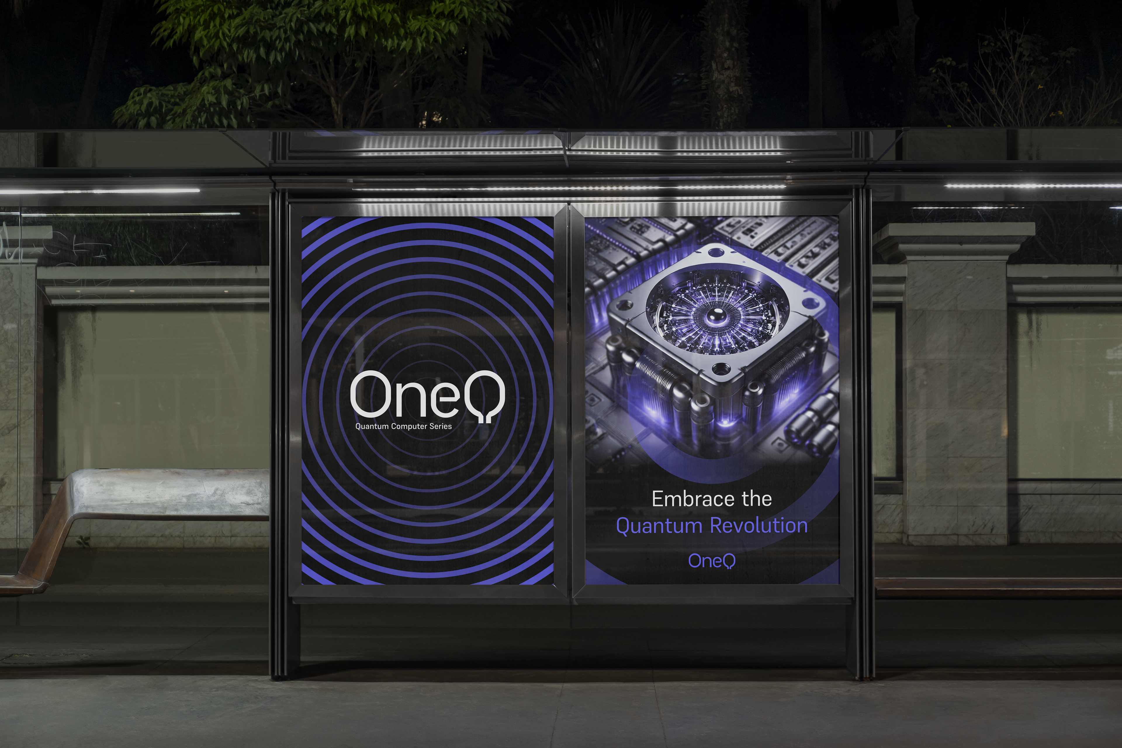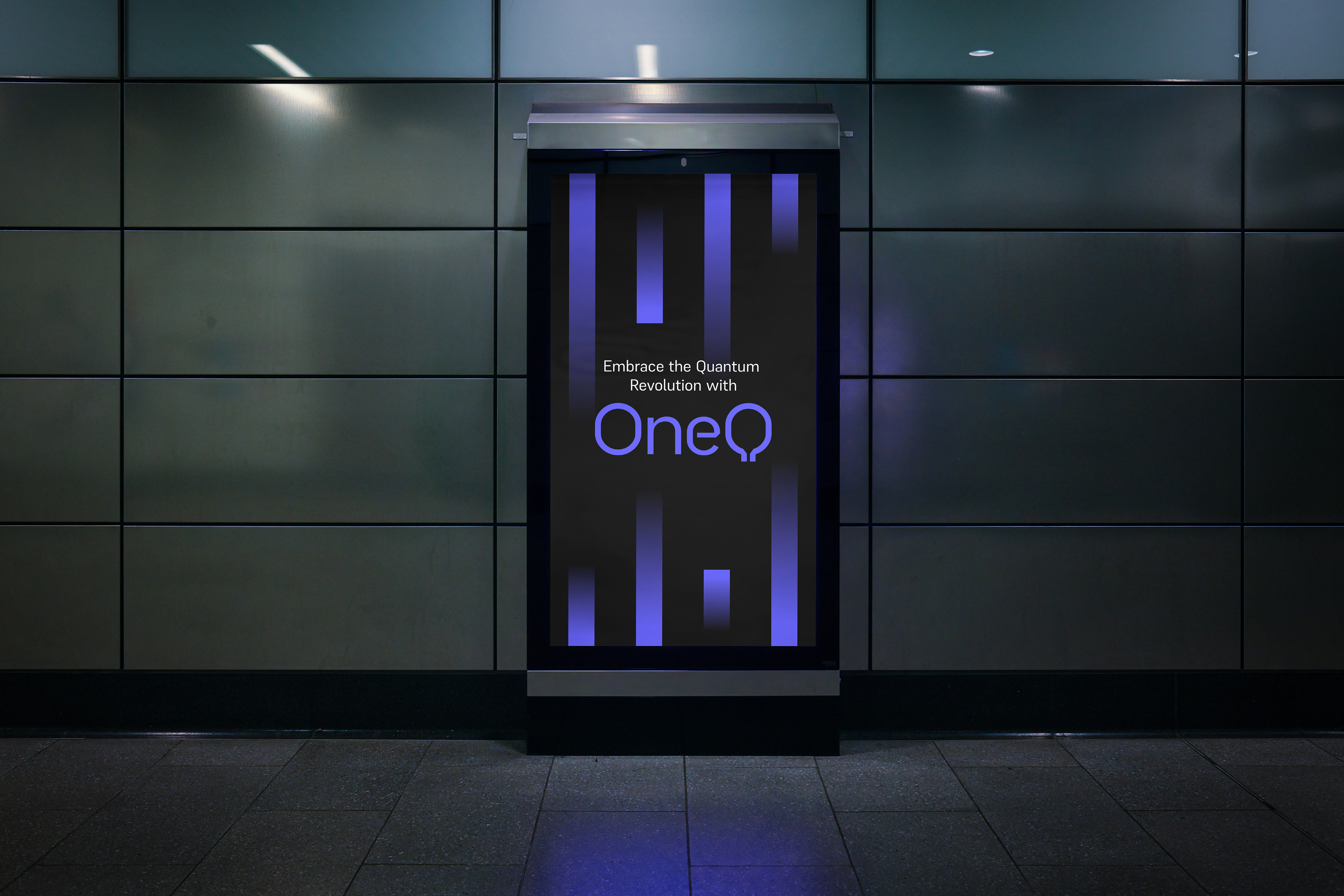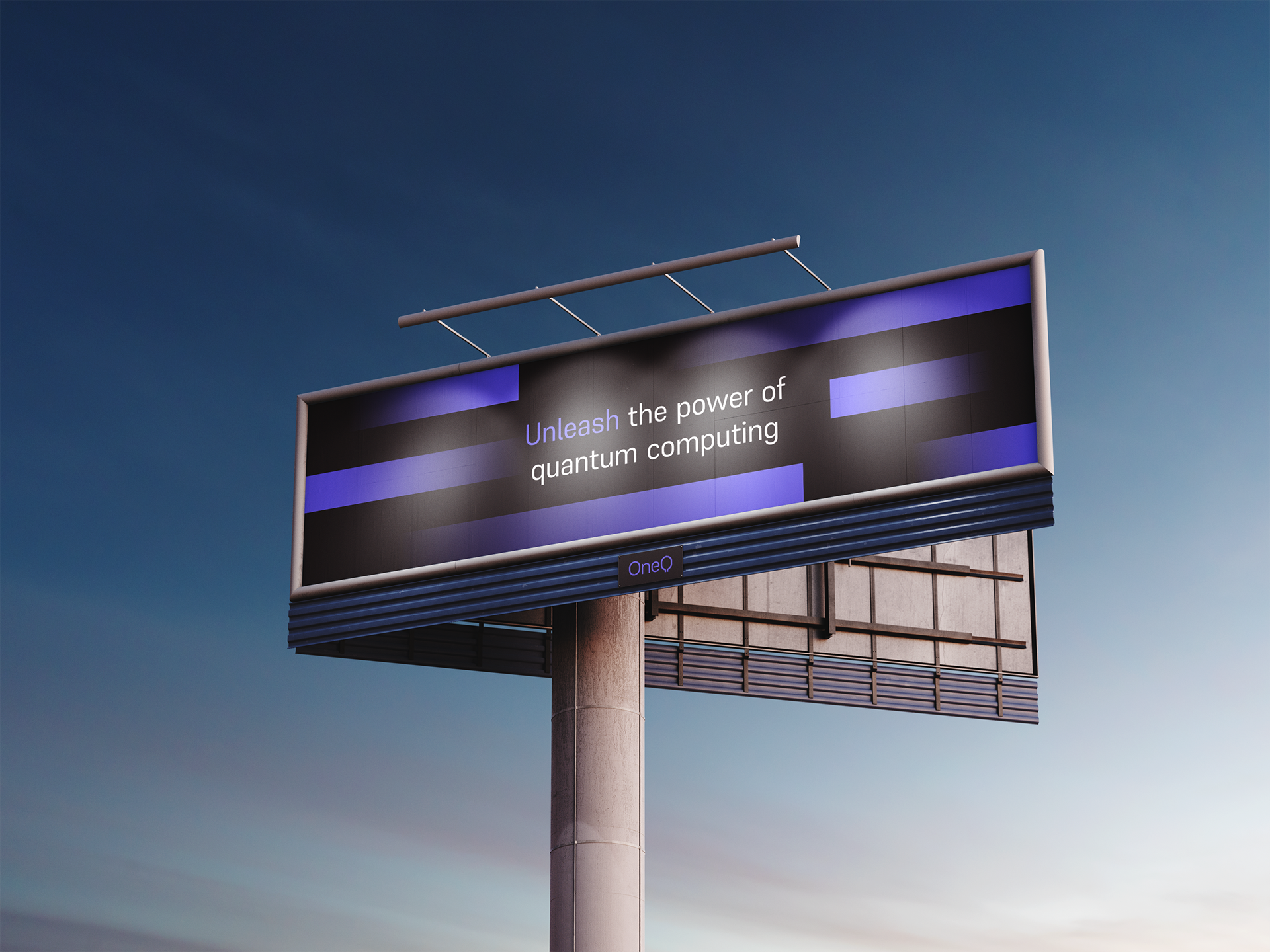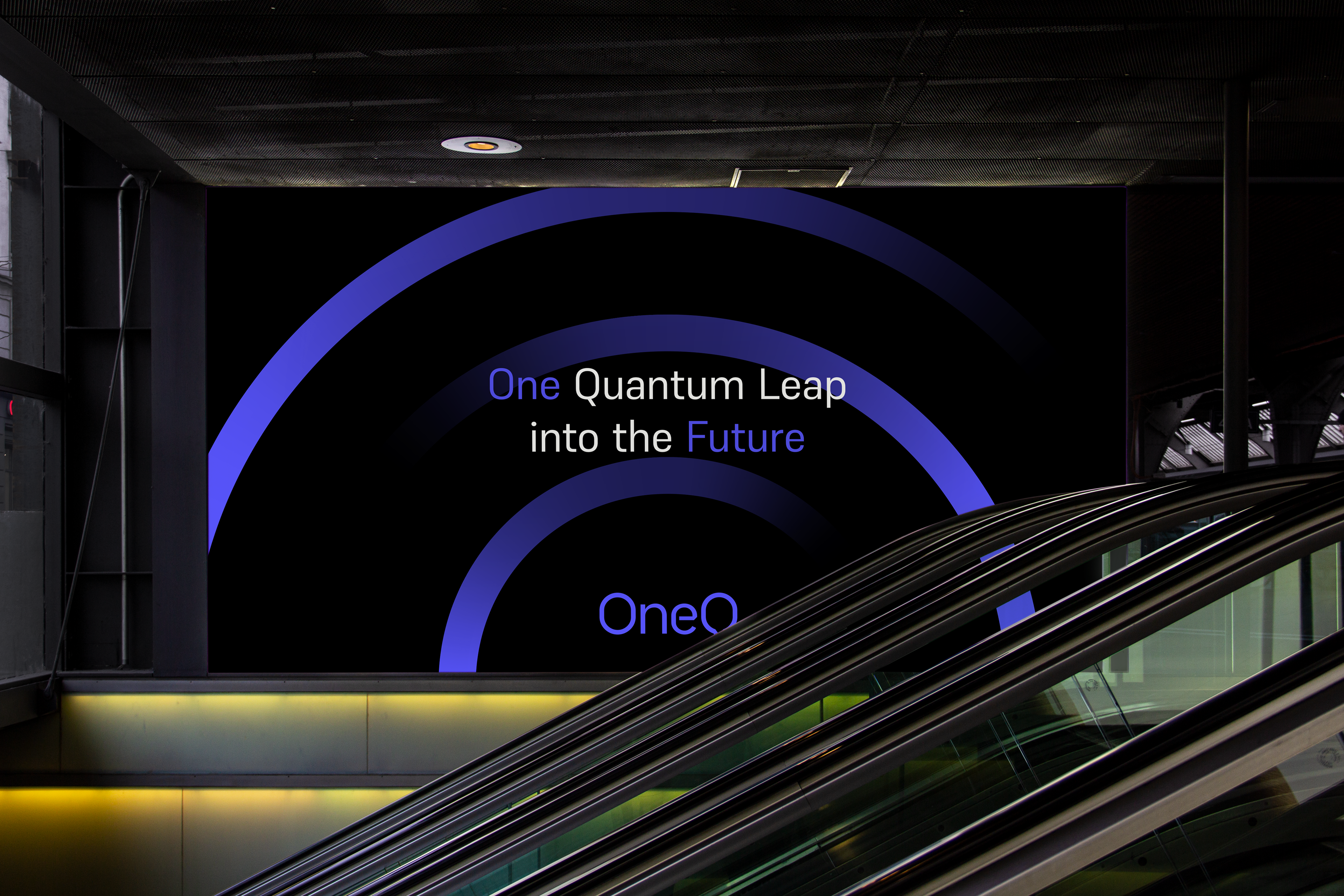 A estratégia ancora o posicionamento na vanguarda do setor, colocando o ecossistema sempre um salto quântico à frente de seu tempo. O nome OneQ captura a singularidade do projeto. A identidade visual codifica os atributos centrais da empresa: moderna, high-tech e líder. O sistema gráfico atua como uma ponte estratégica, conectando a alta engenharia à percepção pública. Ao alinhar estética avançada com clareza, o design consolida a promessa de acesso rápido às tecnologias quânticas, garantindo a interface acessível.